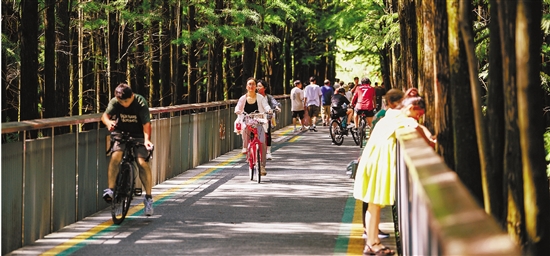 7月2日,随着杭州持续高温,户外水上运动成了市民青睐的休闲项目。在杭州青山湖水上森林,游客们或在水中划船,或在绿道漫步,享受难得的夏日清凉。