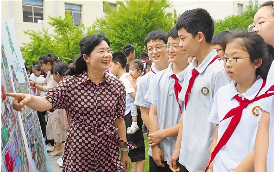 许瑛和孩子们一起观看“珍藏稚拙的童年”摄影展。 通讯员 张和杰 摄