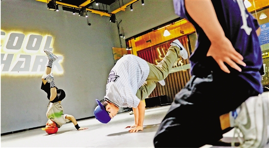 学员在舞蹈室自行训练。参加省级霹雳舞比赛的选手,有的已经练习了6年。