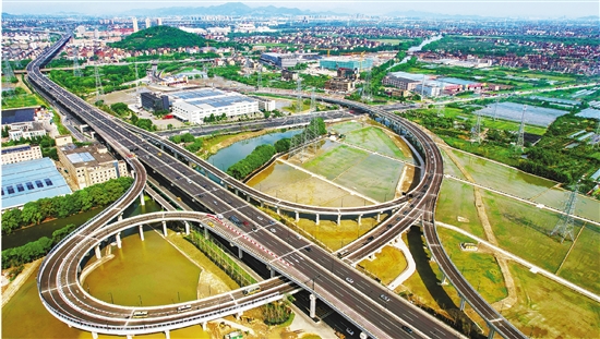 7月7日,104国道杭州至绍兴公路(良渚至崇贤段)改建工程临平段正式通车。该工程是省重点建设项目、杭州亚运会配套保障项目。据悉,104国道改建工程临平段起点位于疏港大道运河大桥东侧,终点与秋石快速路疏港互通地面道路相接,全长6.38千米。图为104国道改建工程临平段崇贤互通。 本报记者 董旭明 拍友 沈燕 吴麒儿 摄 |
