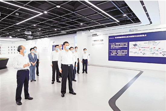 7月5日至7日,中共中央总书记、国家主席、中央军委主席习近平在江苏考察。这是6日下午,习近平在南京市考察紫金山实验室。 新华社记者 谢环驰 摄