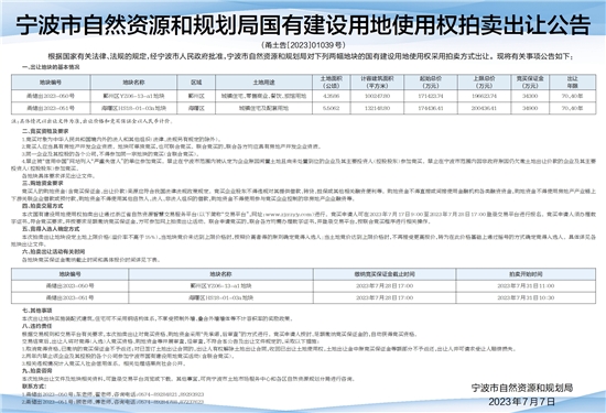 (甬土告〔2023〕01039号)