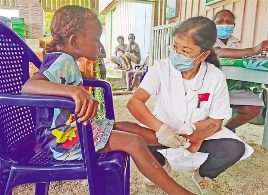 首批援所罗门群岛中国医疗队为当地民众提供诊疗服务。(资料照片) 新华社发