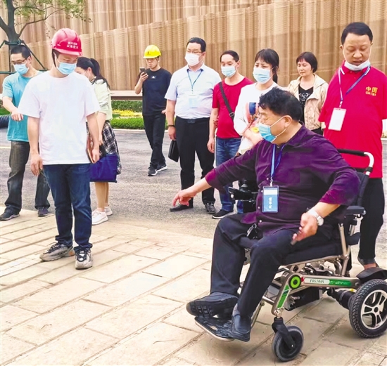 绍兴市残联组织无障碍环境社会督导组各类残疾人代表,赴亚运场馆绍兴棒(垒)球体育文化中心,体验场馆无障碍设施。 拍友 李伟成 摄