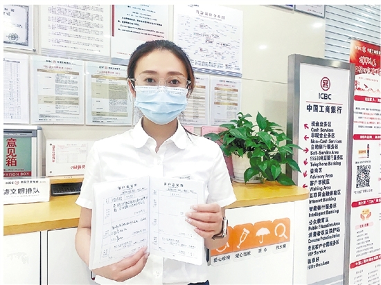 工行丽水商城支行为客户妥善解决存款支付医疗费用问题,客户在意见簿中致谢。