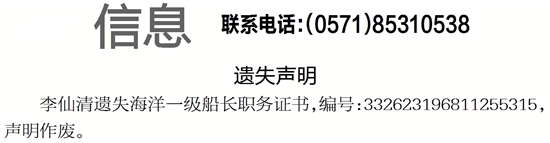 李仙清遗失海洋一级船长职务证书,编号:332623196811255315,声明作废。