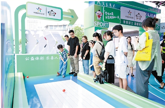 在“燃动亚运”嘉年华活动现场,众多市民参与到互动小游戏中,享受悠然夏日好时光。