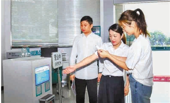 今年,国网武义县供电公司通过设立“行风监测点”,请广大客户参与监督,提升服务水平。图为客户日前在壶山供电所营业厅监督服务质量。 拍友 徐若婷 摄