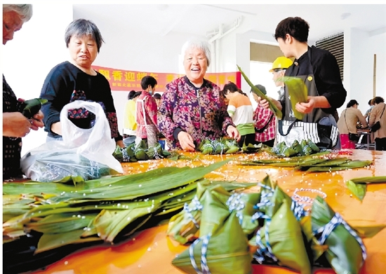 社区举行“粽子飘香 邻里情”包粽子活动。