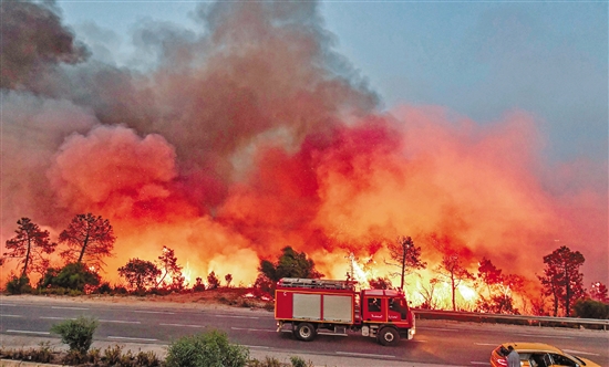 7月24日,突尼斯西北部坚杜拜省的边境地区发生山火。 新华社发