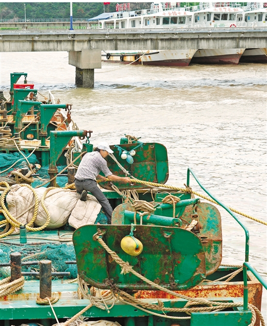 台风“杜苏芮”逼近我国沿海,省防指7月26日决定,将海上防台风应急响应调整为防台风Ⅳ级应急响应,全省各地紧急行动做好防台准备。图为7月26日,乐清湾南岳避风锚地,渔民在加固船只。目前,温州全市13条客运航线全部停航,38个涉水工程项目停工,共撤离1964名海岛游客,2274艘渔船在港避风。 拍友 蔡宽元 摄 (相关报道详见第四版) |