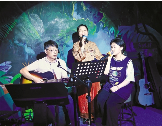 新乡贤、塔后村党总支书记陈孝形(左一)和家人在家中弹唱,被音乐包围的生活,是城里人羡慕的模样。