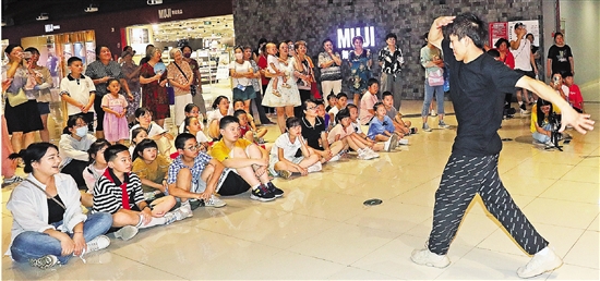 | 8月4日,杭州市上城区文化馆文艺赋美进社区活动来到紫阳街道太庙社区,带来了精彩的霹雳舞表演,并为居民们讲解相关知识和基础舞步,让更多人了解霹雳舞这项杭州亚运会比赛项目。 本报记者 林云龙 拍友 夏衍 摄 |