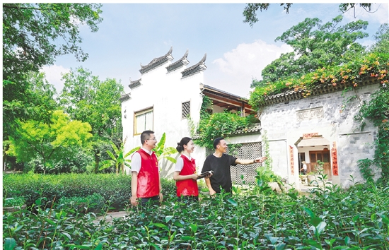 武义农商银行“管家”走访“一水间”民宿,了解民宿经营情况。 夏超鑫 摄