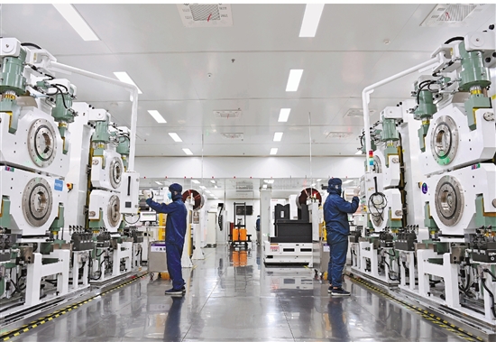 8月9日,位于东阳市横店镇的东磁高新产业园区内,工人们正在车间忙碌。日前,横店集团东磁股份有限公司新增4条高速自动化、信息化锂电池生产线——年产6GWh高性能锂电池项目顺利投产。该项目广泛应用5G、数字孪生、人工智能等新一代信息技术,实现5G云网融合应用终端规模部署,全力打造高效率的锂电池“未来工厂”。 共享联盟·东阳 包康轩 陈超刚 摄 |