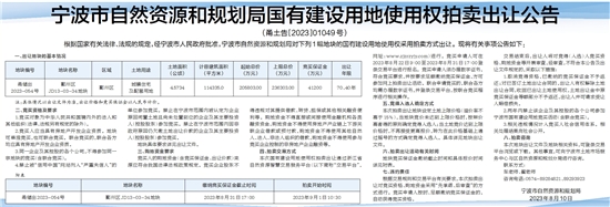 宁波市自然资源和规划局国有建设用地使用权拍卖出让公告