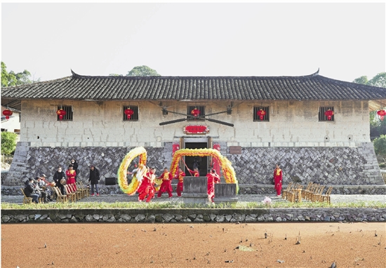 今年初,在交垟土楼群内,泰顺“非遗过大年”活动火热上演,吸引众多游客前去打卡。 (泰顺县非遗中心供图)