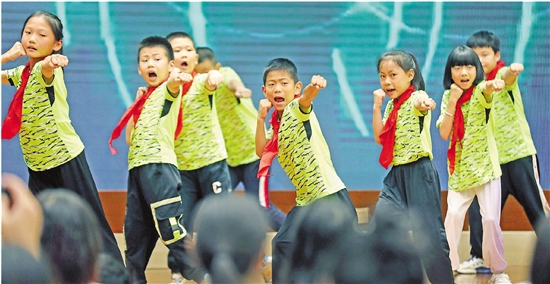 8月11日,第九届“银天书院”公益暑期夏令营在浙江展览馆举行结业仪式,小候鸟们献上了一场精彩的汇报演出。为解决辖区商务企业外来务工人员子女及社区困难儿童寒暑假无人照顾问题,天水街道与银泰商业集团共同发起“银天书院”,已累计服务3700余名学员。 本报记者 林云龙 实习生 王诚之 摄 |