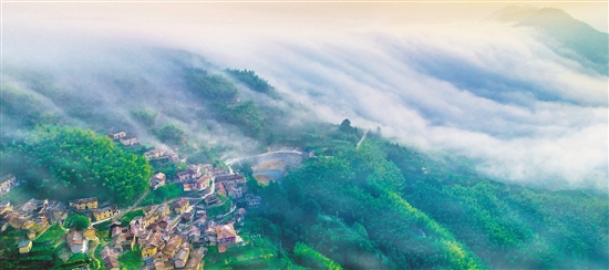 丽水松阳县陈家铺村地处高山悬崖,常年云雾缭绕。近年来,当地通过盘活闲置资源,植入咖啡吧、书吧、民宿等新业态,年轻村民回乡创业,乡村活力不断迸发(资料照片)。 拍友 凌齐亮 摄