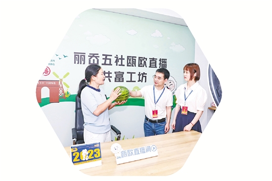 瓯海区纪检监察干部在丽岙街道五社村向农户了解助农直播情况