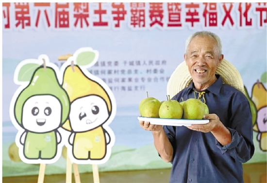 | 梨果飘香,又是一年大丰收。日前,海盐县于城镇何家村举办了第六届“梨王争霸赛”暨幸福文化节。活动吸引了来自何家村、庄家村、八字村等村的20位梨农前来参赛。据悉,目前,何家村约有150户梨农、500亩蜜梨,亩均收益可达1万多元。近几年,何家村还推动特色农产品现场展示和网上交易,走出梨产业的新路子。图为何家村村民褚洪观的梨荣获铜奖。 陆苳妮 顾月良 摄 |