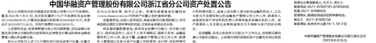 中国华融资产管理股份有限公司浙江省分公司资产处置公告