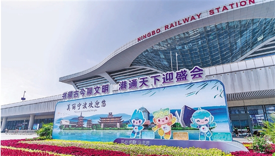 宁波火车站站前广场换上“亚运装”,氛围感拉满,喜迎盛会。 本报记者 贺元凯 拍友 忻之承 摄