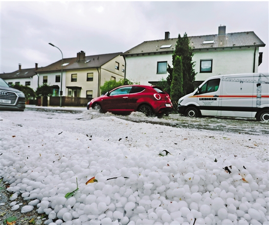 这是8月26日在德国巴伐利亚州拍摄的冰雹。当日,德国巴伐利亚州遭遇冰雹天气。 新华社发