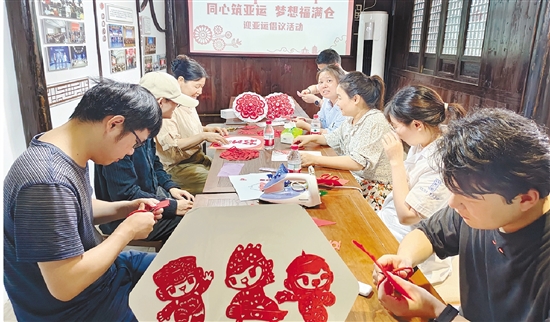 “同心筑亚运 梦想福满仓”剪纸活动(图片由余杭区仓前街道提供)