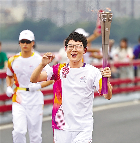 彭清林在杭州传递火炬。 本报记者 吕之遥 摄