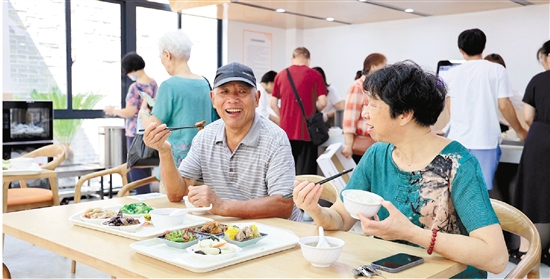 西湖区翠苑一区社区践行“民呼我为”,将“老年食堂”迭代升级到4.0版本。图为老人正在用餐。