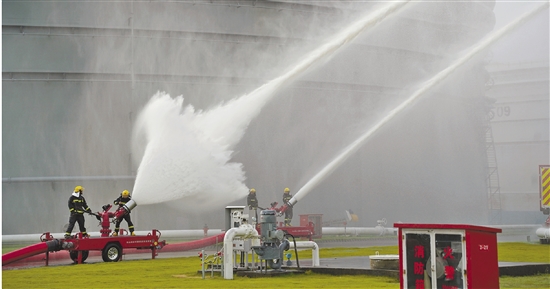 2023年“中国人保杯”舟山市油储行业火灾应急处置综合演练现场