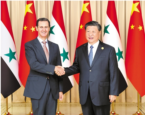 9月22日下午,国家主席习近平在杭州西湖国宾馆会见来华出席第19届亚洲运动会开幕式的叙利亚总统巴沙尔。