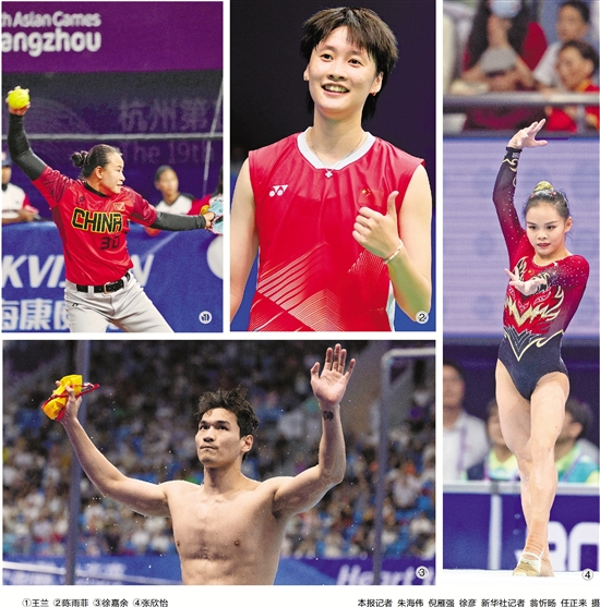 ①王兰 ②陈雨菲 ③徐嘉余 ④张欣怡 本报记者 朱海伟 倪雁强 徐彦 新华社记者 翁忻旸 任正来 摄