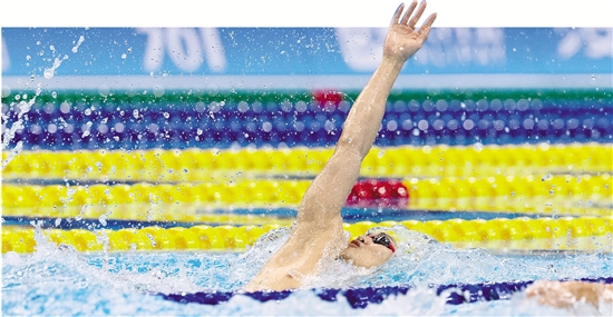 29日,浙江运动员徐嘉余在男子200米仰泳决赛中夺冠,收获本届亚运会个人第5金,也是中国游泳队本届亚运会的最后一枚金牌。 本报记者 倪雁强 朱海伟 摄