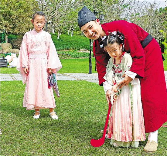10月1日,杭州余杭径山花海拾花节暨宋韵游园会开启。市民游客畅游花海,体验射箭、锤丸、投壶、蹴鞠等宋代运动。 本报记者 林云龙 拍友 陈海燕 摄
