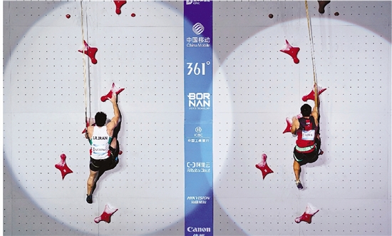 10月3日,杭州亚运会攀岩项目赛事进入首个比赛日,当晚决出了女子、男子个人速度项目两枚金牌。来自印度尼西亚的马德·丽塔和伊朗的礼萨分别摘金,中国队选手邓丽娟、龙金宝收获银牌。图为比赛现场。 本报记者 徐添城 干婧 王啸天 文/摄 |