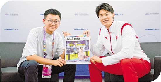 石甫天(左)与汪顺拿着《Asiad Daily》合影。 受访者供图