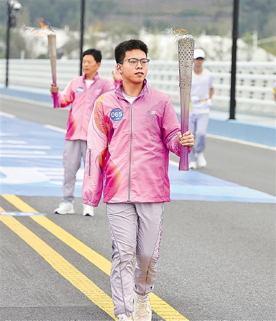 张家城在淳安传递火炬。 本报记者 吕之遥 摄
