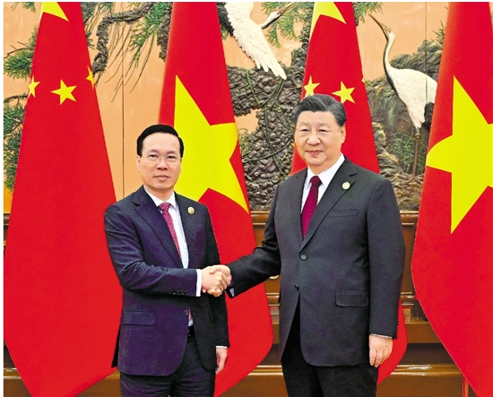 10月20日上午,国家主席习近平在北京人民大会堂会见来华出席第三届“一带一路”国际合作高峰论坛的越南国家主席武文赏。
