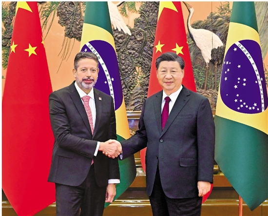 10月20日上午,国家主席习近平在北京人民大会堂会见巴西众议长里拉。