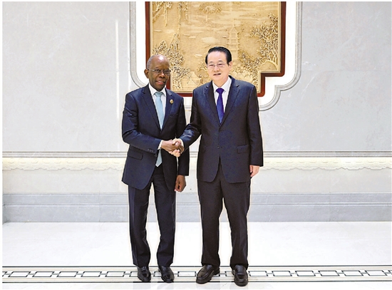 10月21日下午,省委书记、省人大常委会主任易炼红在杭州会见了出席第三届“一带一路”国际合作高峰论坛的莫桑比克总理马莱阿内一行。 本报记者 胡元勇 摄