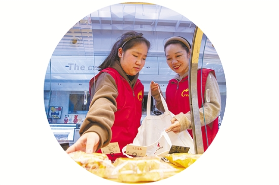 温岭市火速党员志愿服务队志愿者在收集“爱心面包” 徐伟杰 摄