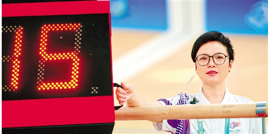 陈子璐在杭州亚残运会场地自行车比赛中执裁。 本版图片除署名外均由受访者提供