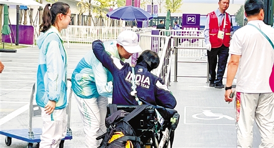 悉达多·巴布依依不舍地与王炜和项忆瑾拥抱道别。 本报记者 李睿 摄
