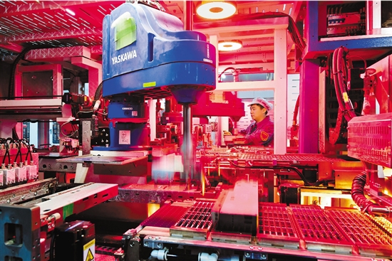 1月18日,金华市金东区江岭高新智造区,在浙江润马光能集团有限公司一期2GW光伏组件数字化智能线上,工人正在忙生产。 拍友 时补法 本报记者 潘秋亚 摄