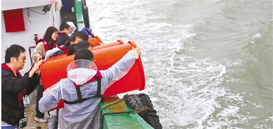 6月6日,全国放鱼日,台州市路桥区在东海开展增殖放流活动,向大海投放梭子蟹、对虾、乌贼等小苗共计2515万尾(只)。 拍友 蒋友青 摄