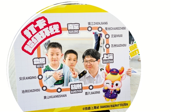 6月15日,在铁路上海站站台,旅客在出发前拍照打卡。 本报记者 董旭明 摄