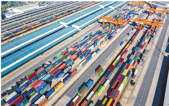 今年1—5月,浙江中欧班列金东平台共发送227列,同比增加44.5%;金华南海铁联运班列累计发送236列,同比增加51%。 杨梅清 摄
