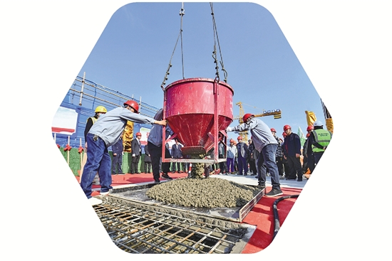 金武新城发展中心(一期)项目主楼结顶仪式现场 沈云建 摄